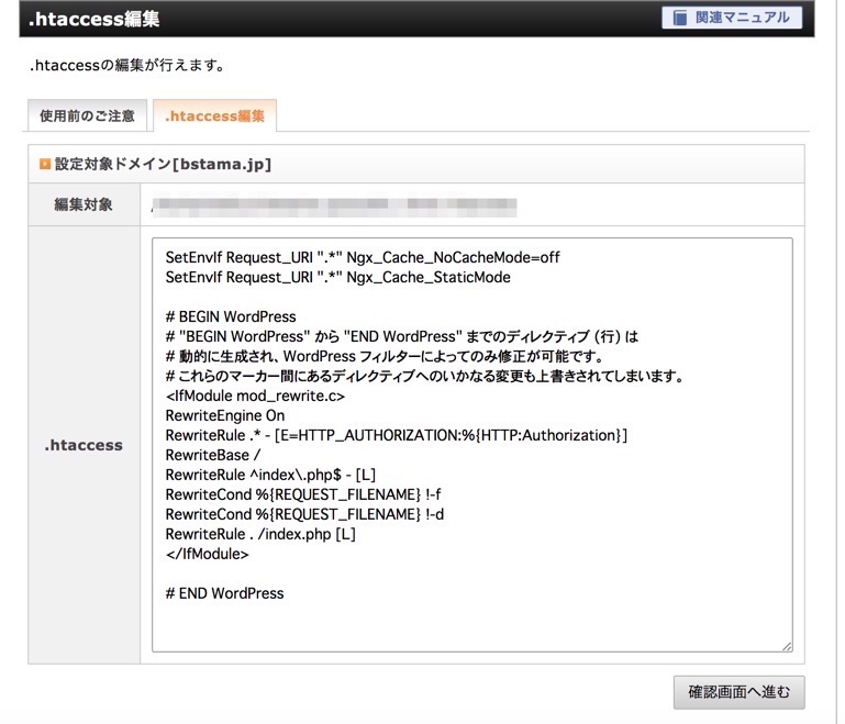 ・「htaccess編集」をクリックする。
